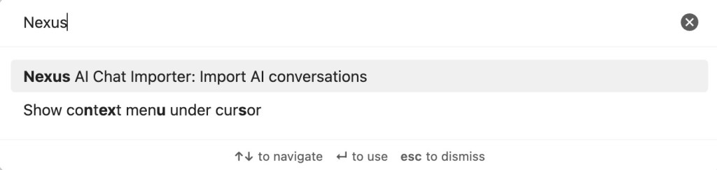 Once the command palette is open, click “Nexus AI Chat Importer: Import AI conversations”.