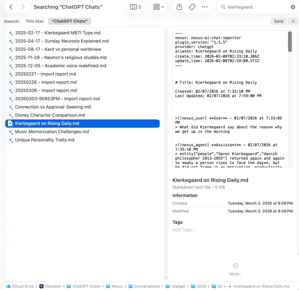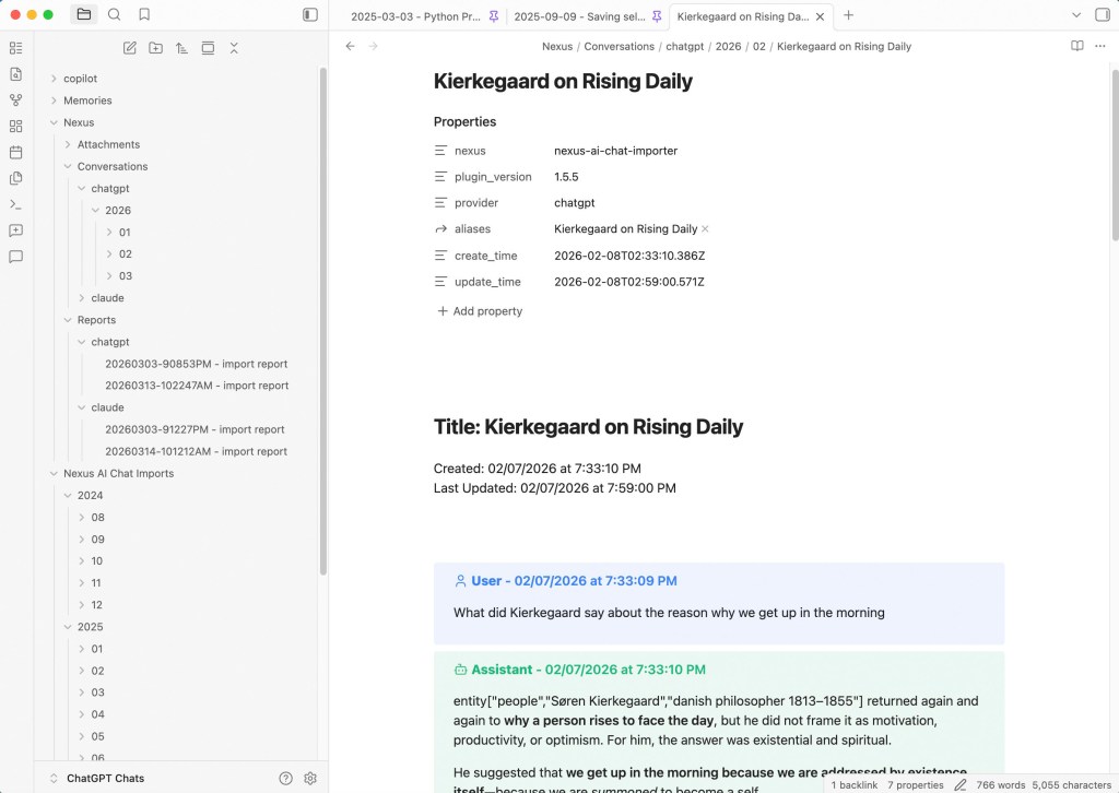 I have been exporting my conversations from artificial intelligence into my Obsidian vault since August 2024.
