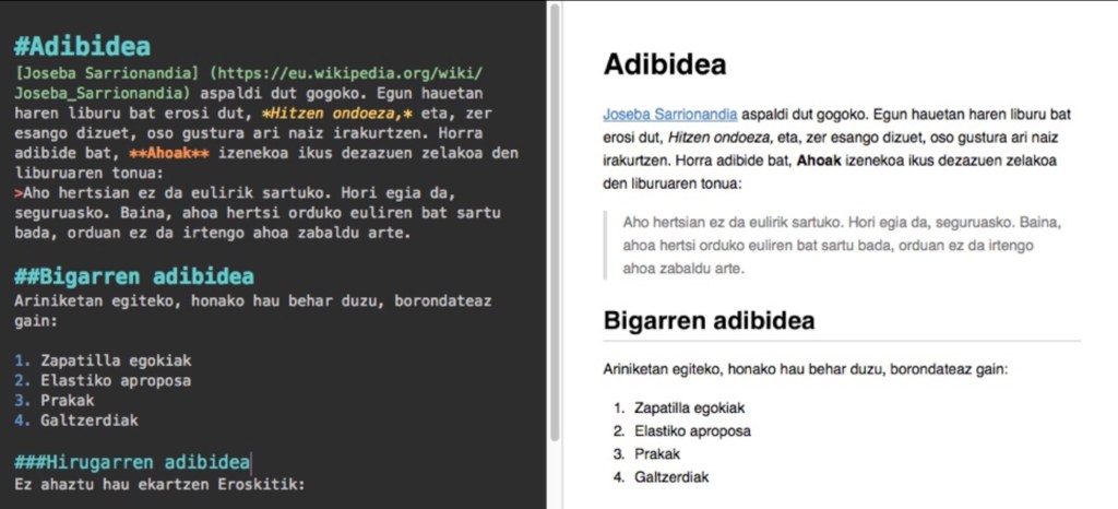 Below you can see an example. Markdown is simple to learn – here is an easy Basic Syntax guide to start with.