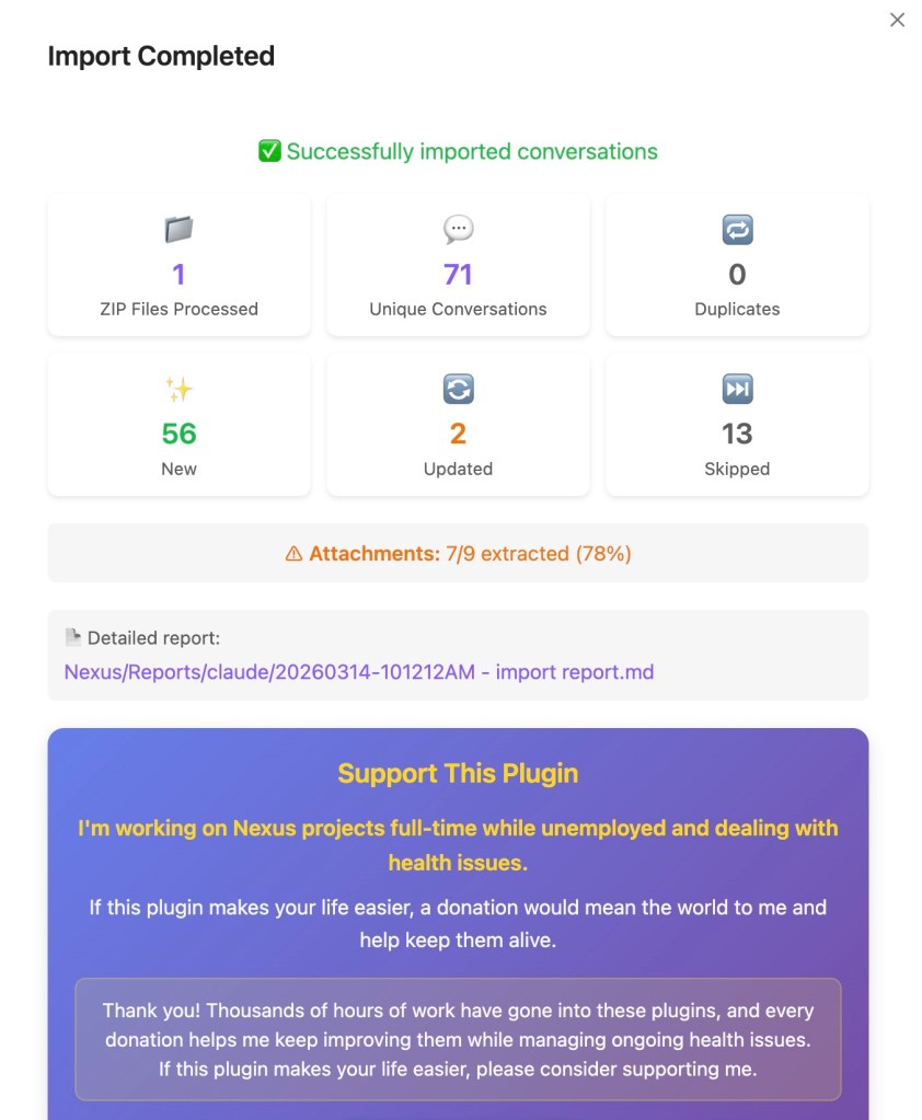 This was my second import from Claude. You can see in the image that 2 files were updated from a previous import because I didn’t fully delete the files from the first import.